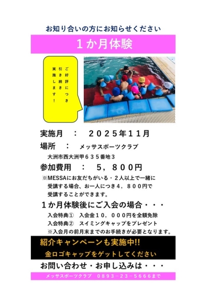 2025年5月~8月 1ヶ月体験 参加者受付中!